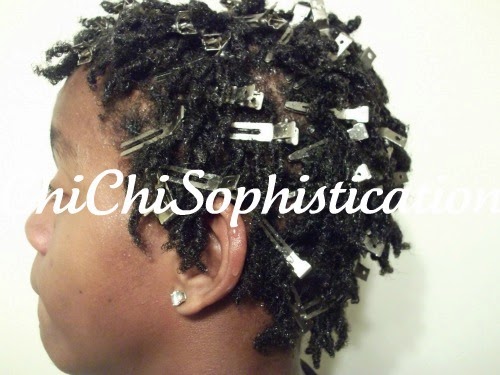 | I added Clips to secure the Dread. Kyle sat under the Hair Dryer for 1hour & 30 mins. I also advised him to keep the Clips in over night. |