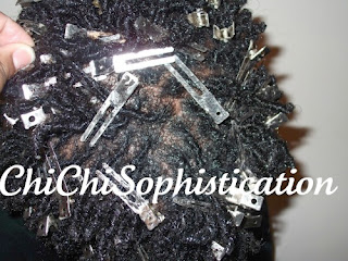 | I added Clips to secure the Dread. Kyle sat under the Hair Dryer for 1hour & 30 mins. I also advised him to keep the Clips in over night. |