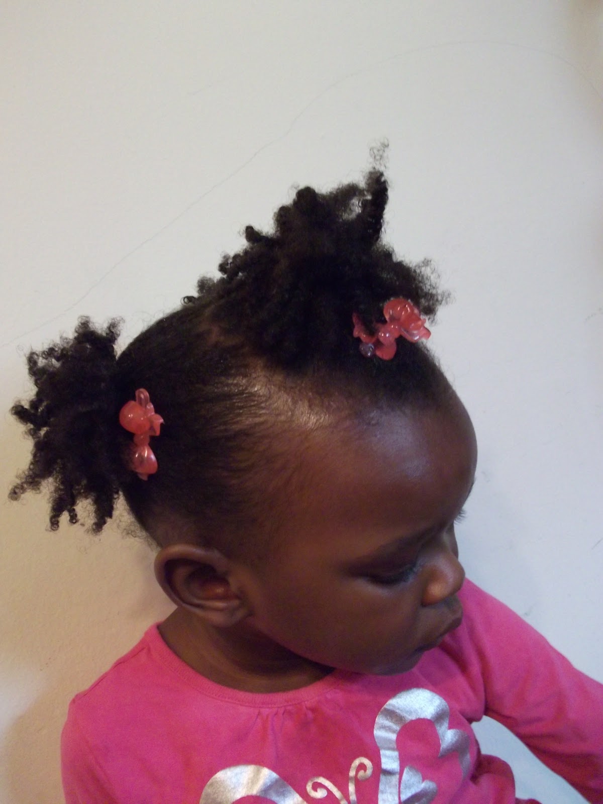 My daughter's hair was styled in Two Strand Twist a week and a half ago. I took down her Twist which created a whole new style. Pony Tails "N" Twist Out.